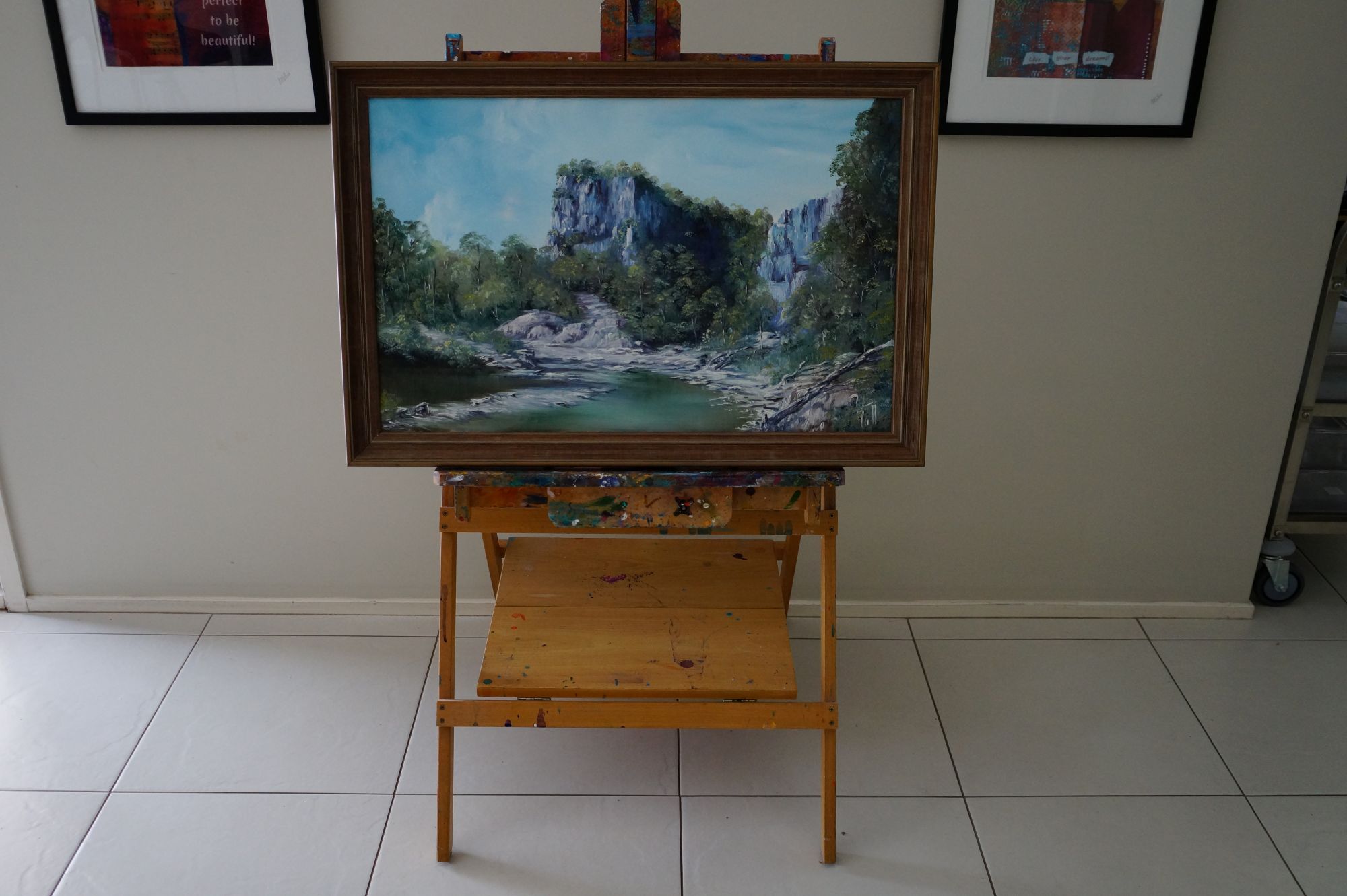 This piece is an original painting of the Three Sisters at Katoomba, NSW. It is an extraordinary painting. |