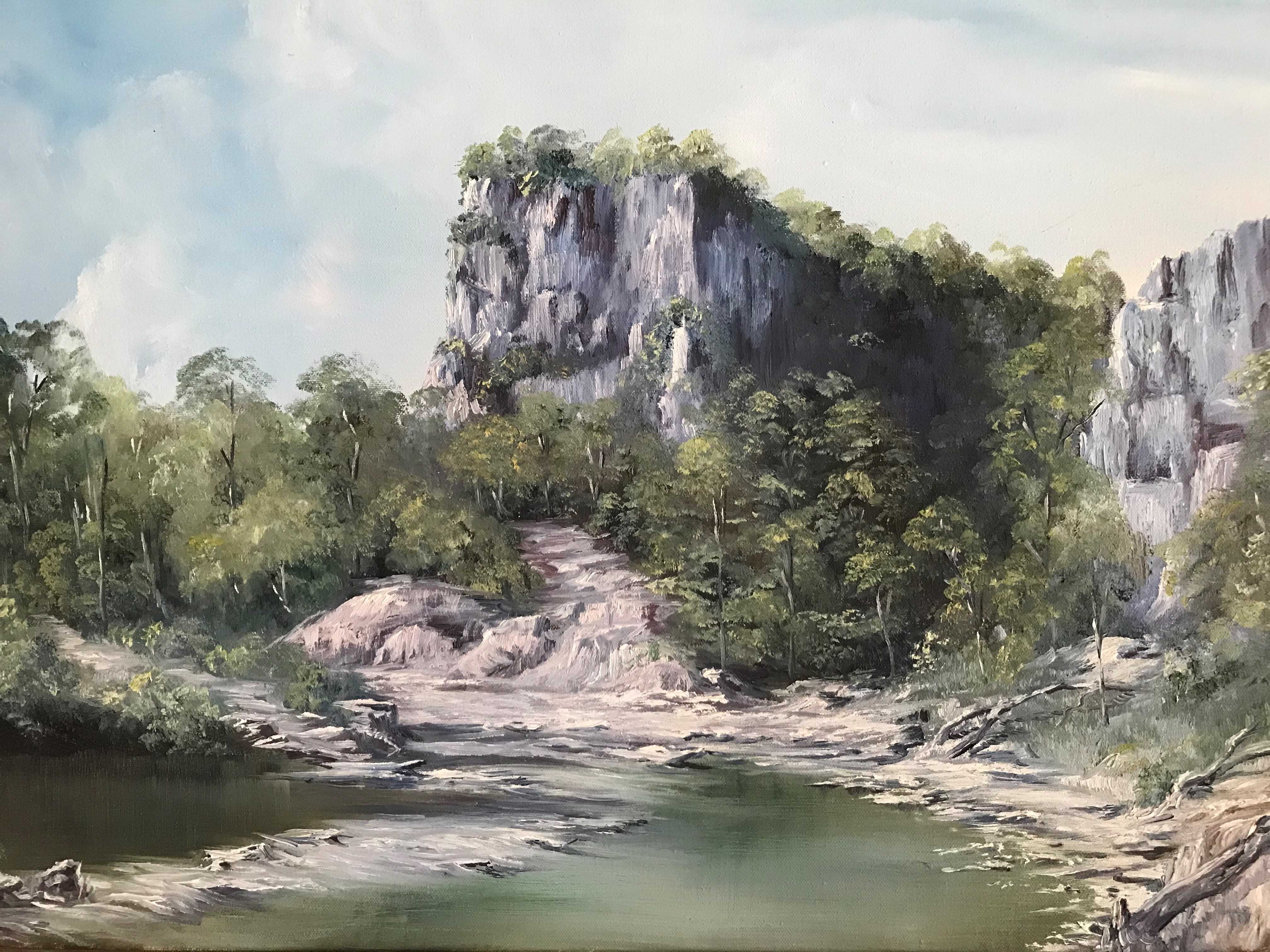 Artist: Ian Tull (Original) Titled: Grey Cliffs Oil on Canvas. As you can see from the images, this is a beautifully detailed painting and the artist has managed to bring out the texture of the landscape. Dimensions: Width 79 cm, Height 53 cm. (With Frame) Weight: 2.5 kg.landscapes |