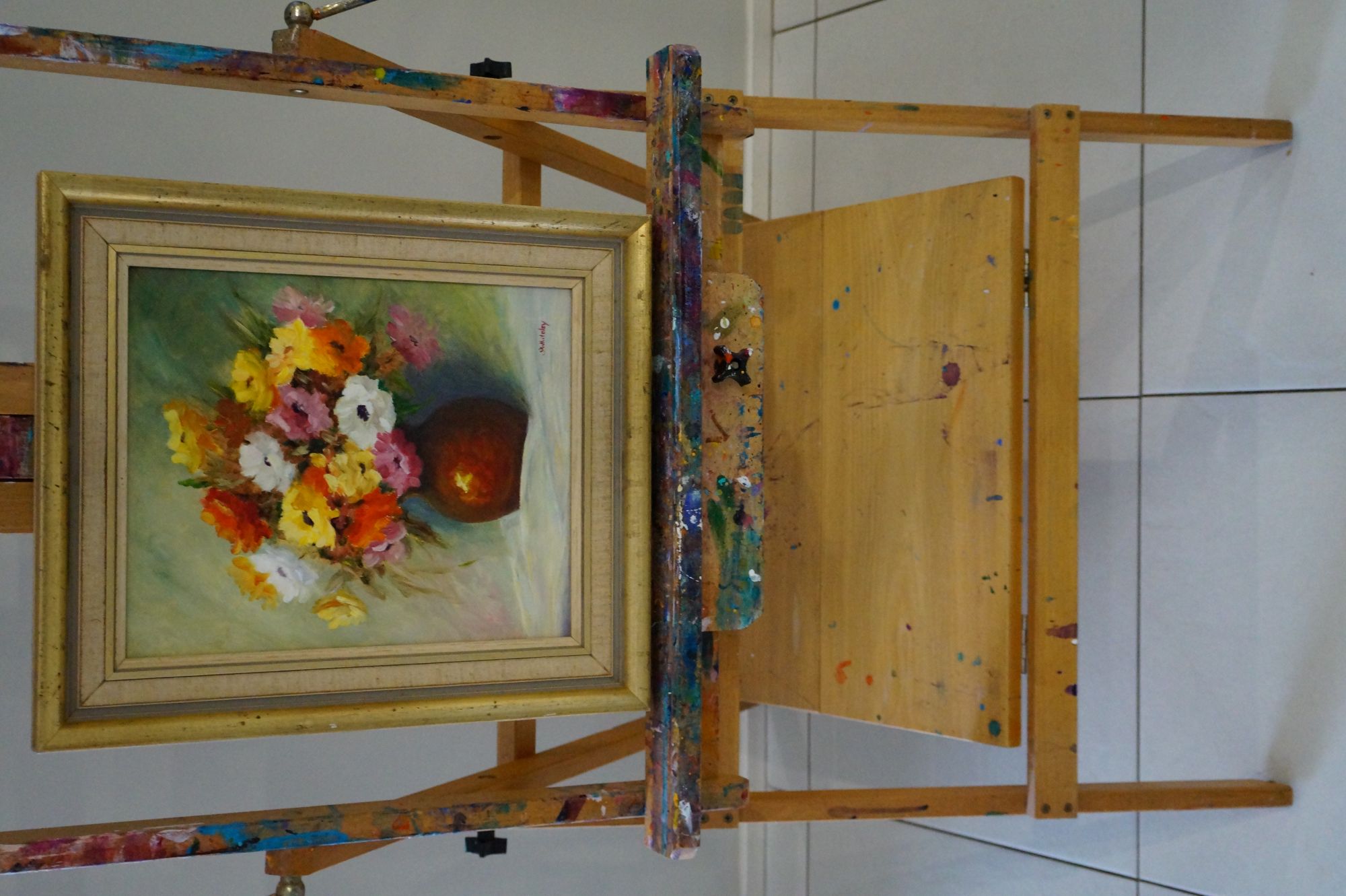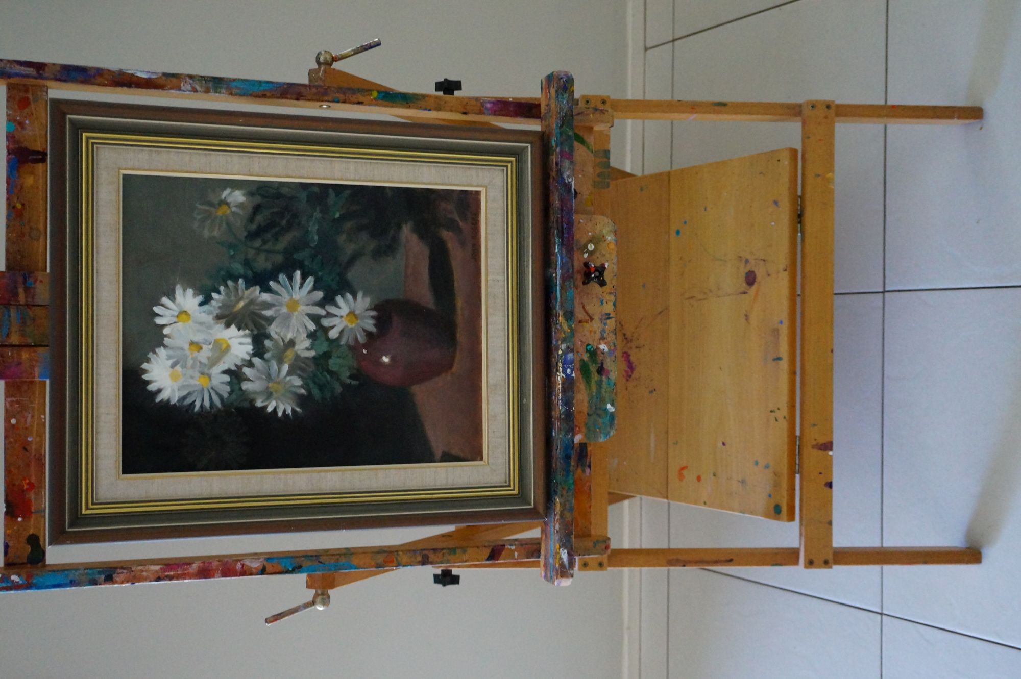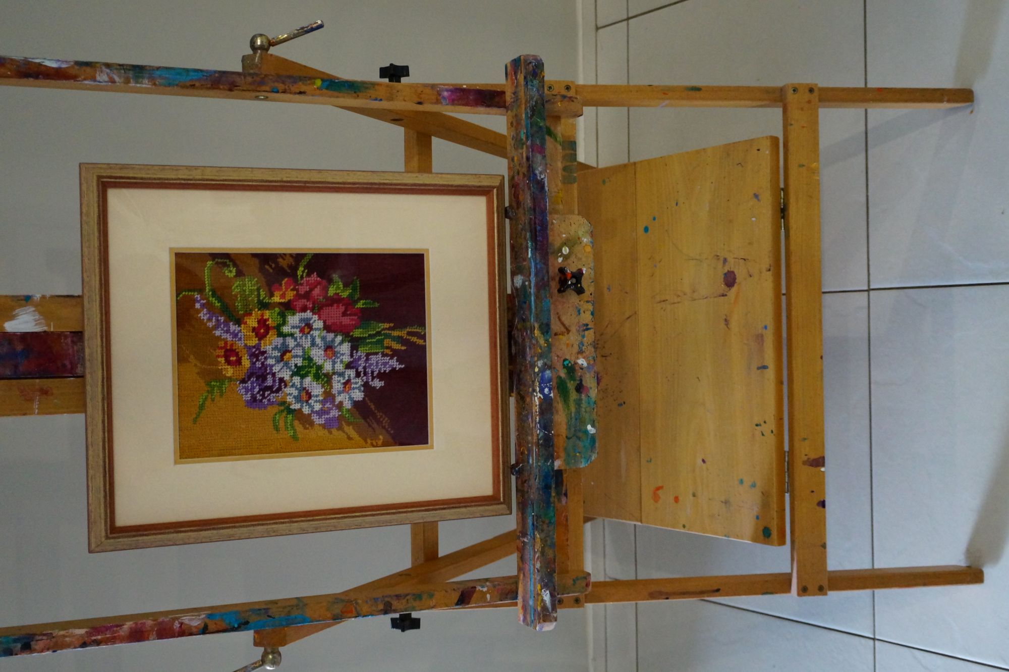 This art piece was acquired with some damage to two corners of the frame. Some restoration work on these two corners will be required before sale. It was such an outstanding piece of art that it was decided to purchase regardless of the damage. |